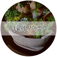작년 봄에 무슨 바람이 들었는지, 옹이 그릇에 수경재배로 미니 연못을 만들어보겠다며... 옹이 그릇도 사고 수경재배 식물도 잔뜩 사 나만의 연못을 만들었습니다. 하지만 저는 식물 키우는데는 소질이 없나봐요... 알 수 없는 이유로 식물들이 하나씩 죽어나가고 결국 개운죽만 남아 풍성하고 파릇파릇한 연못은 휑하고 삭막하게 변해버렸습니다. 몇 달을 그냥 방치해둬서 외로워 보이는 개운죽에게 새로운 집도 마련해주고, 새 친구들도 만들어주기로 마음먹고 퇴근 후 사무실 건물에 있는 꽃집에 들려보았습니다.